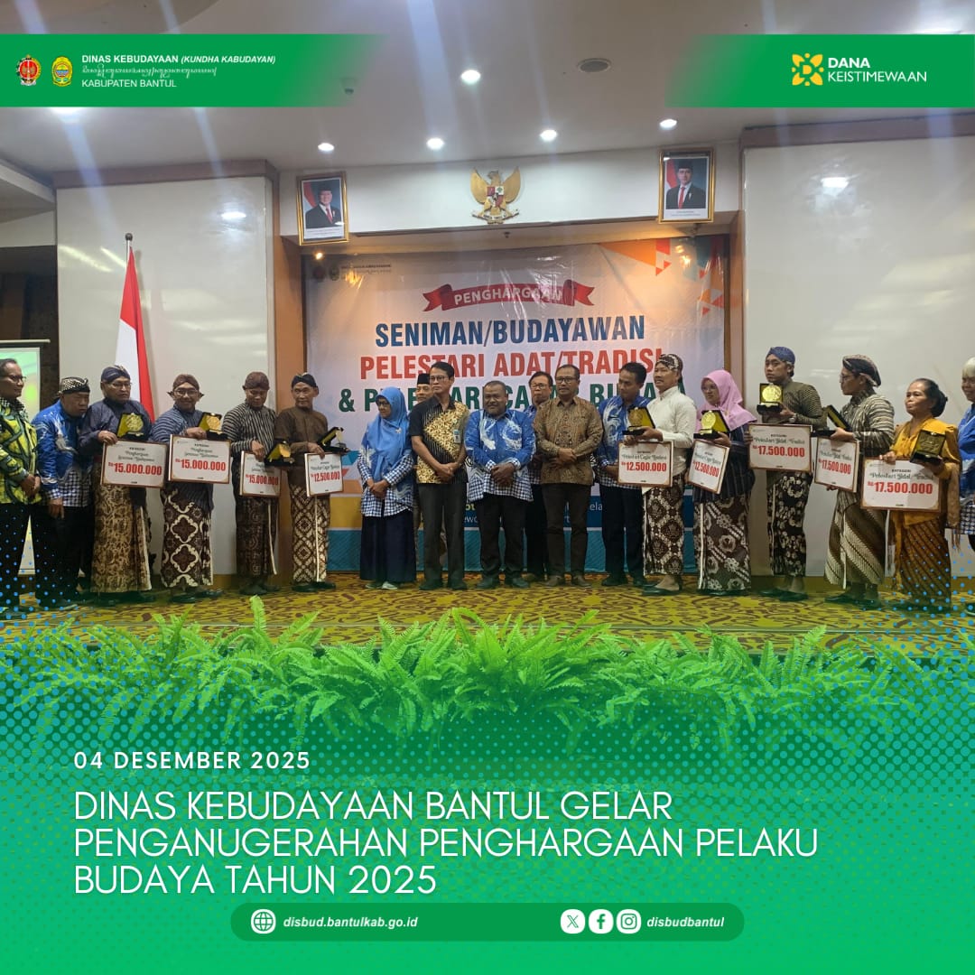 Bantu Dinas Kebudayaan (Kundha Kabudayan) Kabupaten Bantul untuk meningkatkan pelayanan dengan mengisi survey kepuasan masyarakat melalui tautan berikut, maturnuwun. Salam Budaya, Lestari Budayaku!