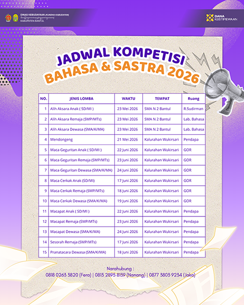 Tautan Pendaftaran : https://bit.ly/DaftarBahasaSastraBantul26