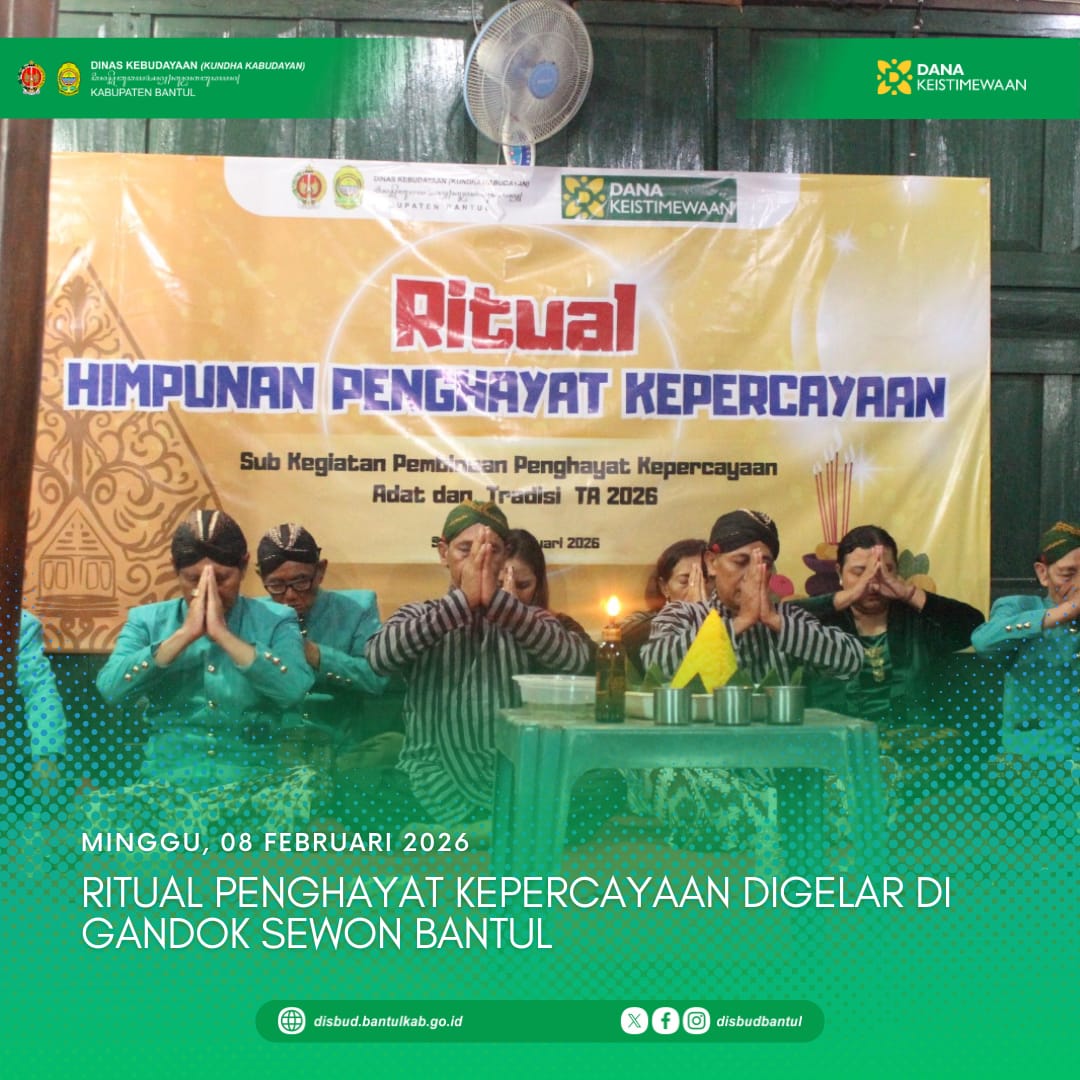 Sewon — Ritual Penghayat Kepercayaan Kapribaden dilaksanakan pada Minggu, 8 Februari 2026, bertempat di Gandok, Kalurahan Bangunharjo, Kapanewon Sewon, Kabupaten Bantul. Kegiatan ini menjadi...