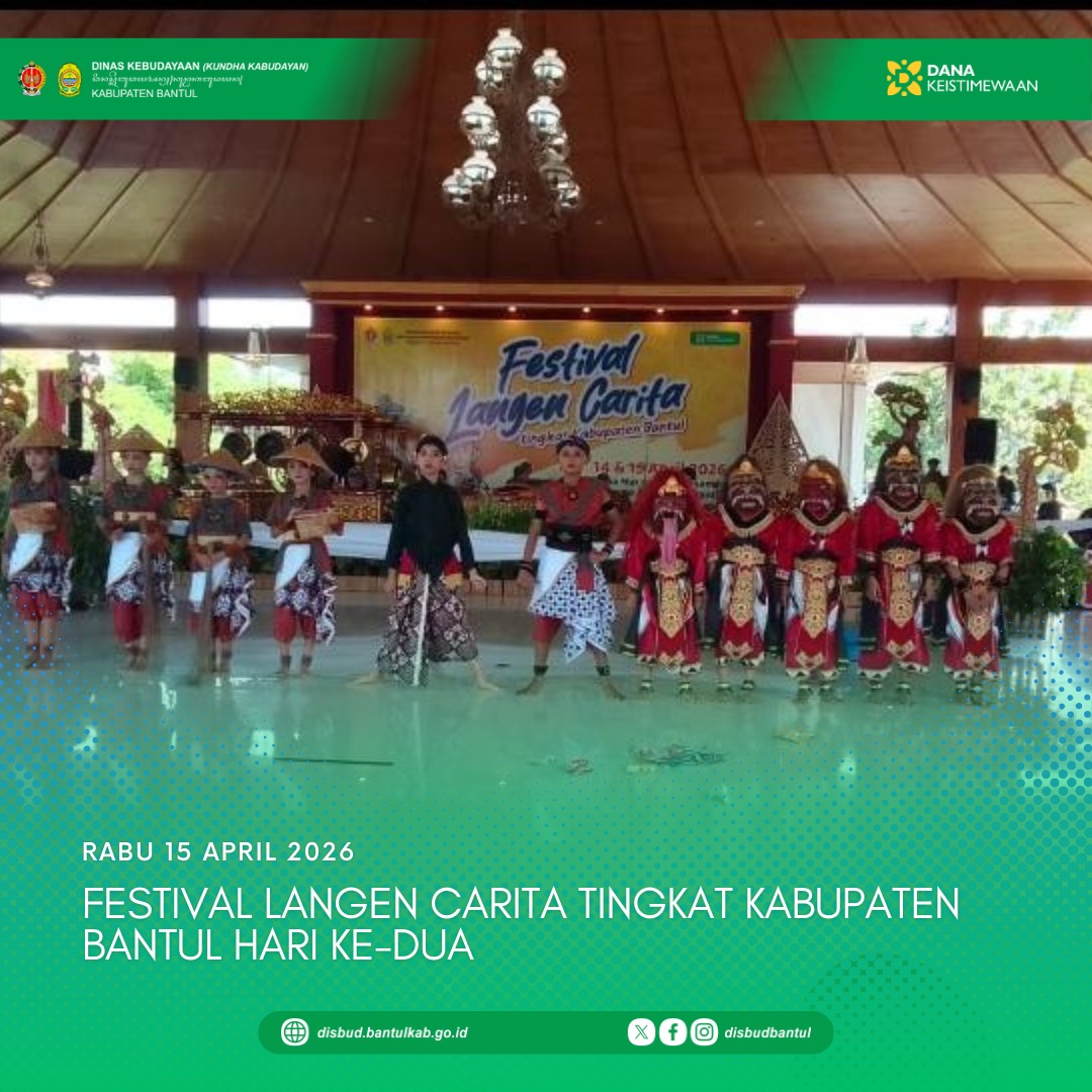 Bantul – Festival Langen Carita Anak Tahun 2026 tingkat Kabupaten Bantul memasuki hari kedua pada Rabu (15/4/2026) di Pendapa Parasamya II, Kompleks Perkantoran Pemkab Bantul, Manding, Trirenggo....