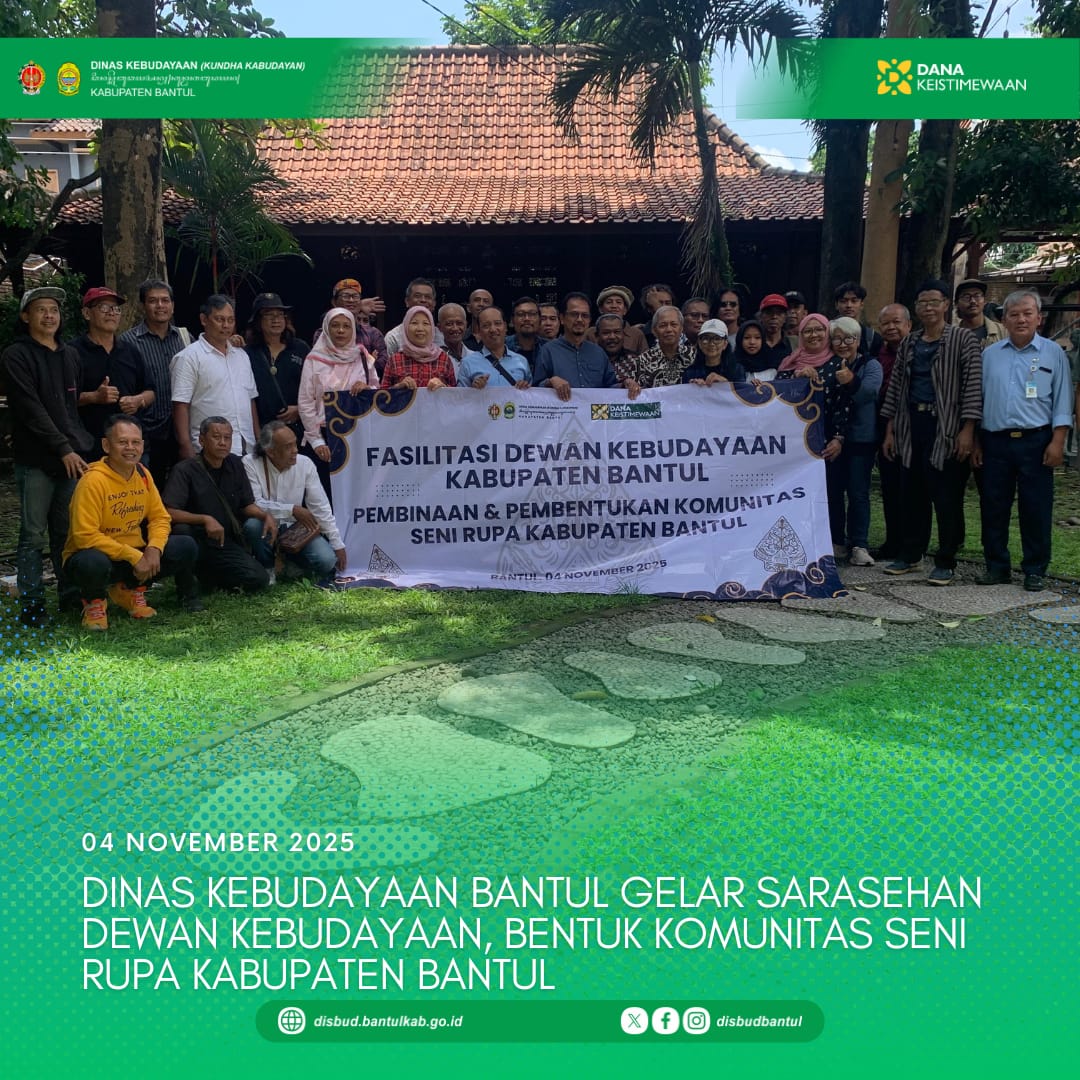 Sewon, 4 November 2025 – Dinas Kebudayaan (Kundha Kabudayan) Kabupaten Bantul kembali menyelenggarakan kegiatan Sarasehan Fasilitasi Dewan Kebudayaan Bantul pada Selasa (4/11/2025) pukul 09.00...
