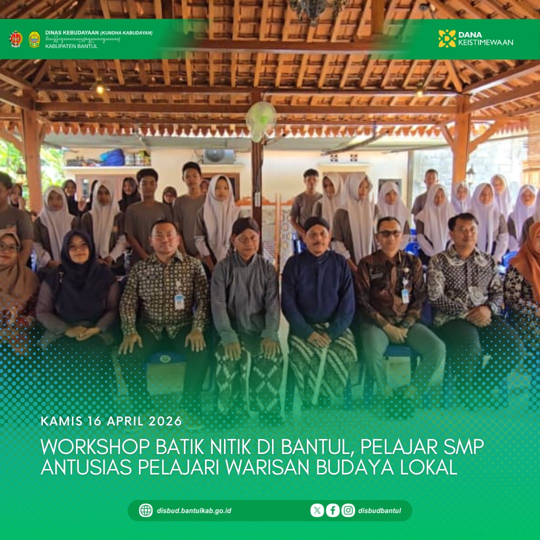 Jetis – Dinas Kebudayaan (Kundha Kabudayan) Kabupaten Bantul menggelar workshop batik nitik di Padukuhan Kembangsongo, Kalurahan Trimulyo, Kapanewon Jetis, Bantul, Kamis (16/4/2026) pukul 09.00...